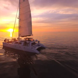 Accomodations: 48 People (75 bottle wine locker, flat screen tv, spacious outdoor decks, covered aft cockpit and swim deck.)